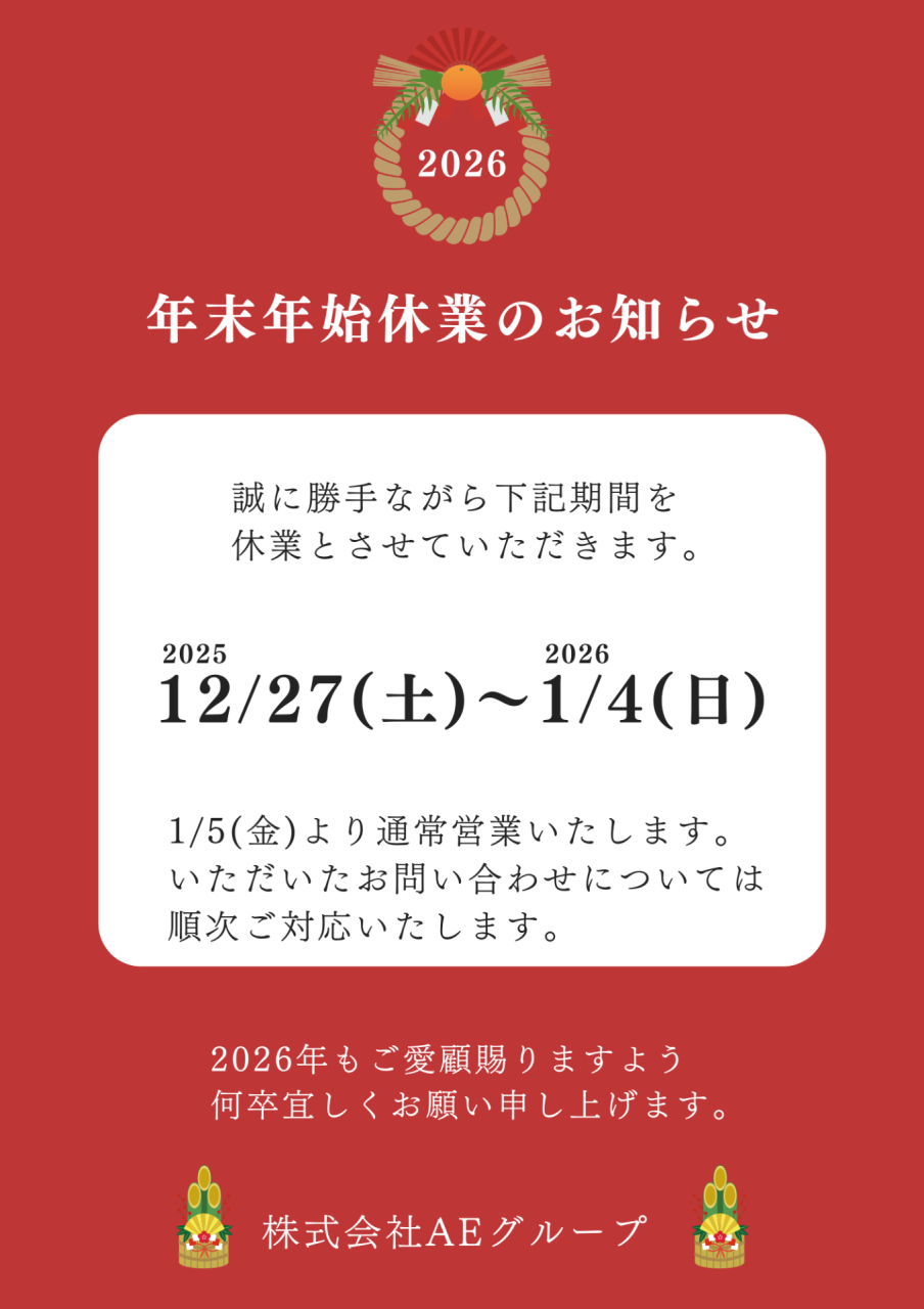 誠に勝手ながら、下記日程にて【年末年始休業】とさせていただきます。